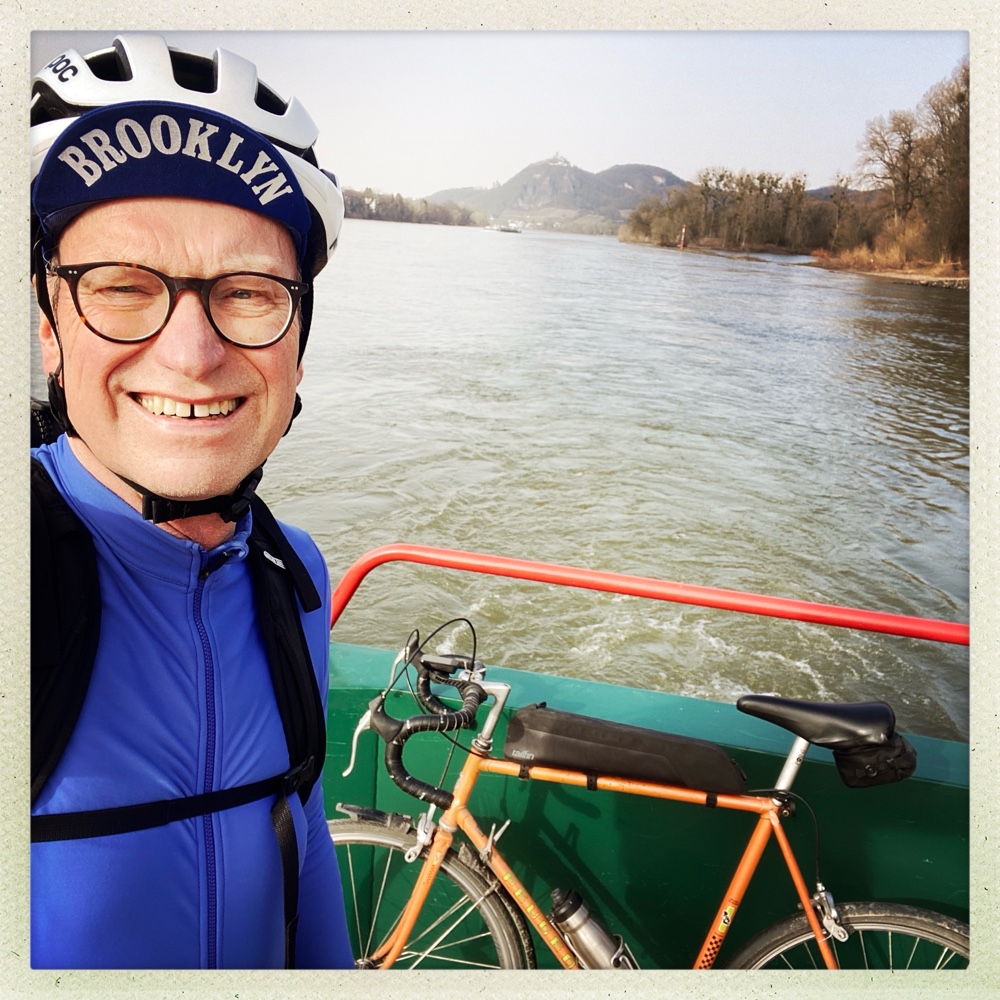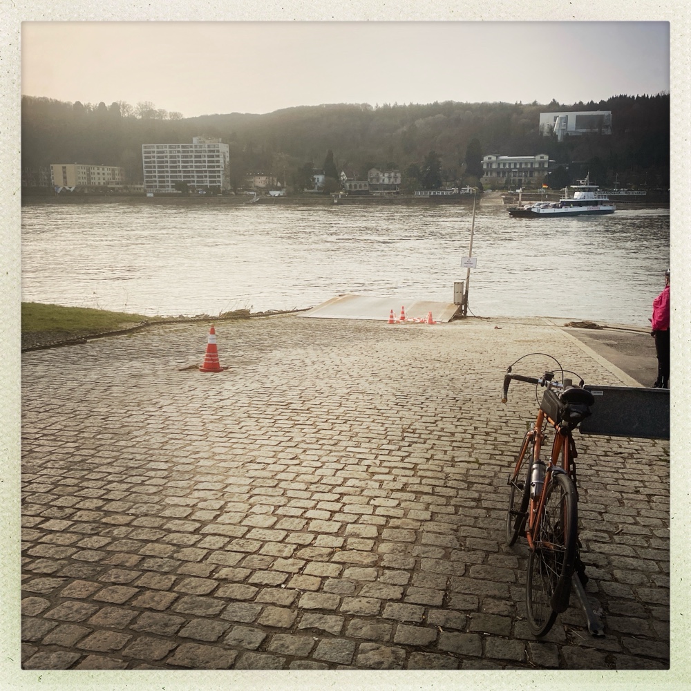 Im Laufe der Jahre habe ich viele Fähren zwischen dem römischen und dem germanischen Rheinufer ausprobiert. Die beste Stimmung ist die auf der Fähre zwischen Bad Honnef und Rolandseck. Da ist man so weit von Brücken entfernt, dass es einfach viele Stammgäste gibt, die die Betreiber freundlich grüßen. Und an einer dramatisch schönen Stelle quert man den Rhein. Herrlich. So geht Fährien im Alltag.