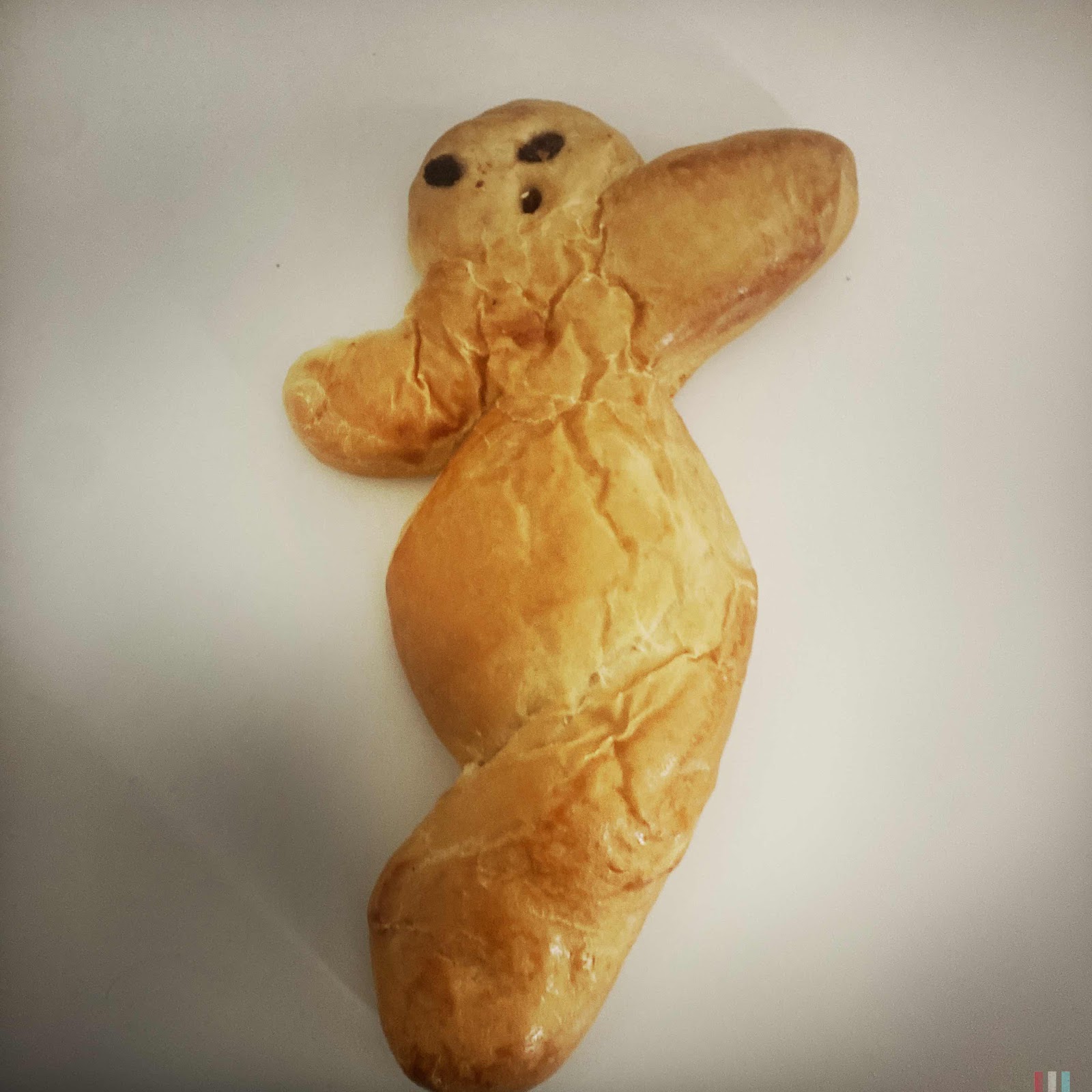 Ich mag die dunkle Jahreszeit nicht. Ich trotze ihr seit Jahren mit einem besonders starken Licht, das mit den Weg erhält und alle Blicke auf mich lenkt. Nun wurde mir ein kleiner Trost in der Bäckerei zuteil. Unter Einfluss der Kommerzialisierung des irischen Festes Halloween wurde aus dem Weckmann ein Schreckmann. Das gefällt mir, denn die Pfeife hat mich nach Kindheitszeiten nicht mehr interessiert. Ein schöner Trost nach dunkler und nasser morgendlicher Fahrt ins Büro.