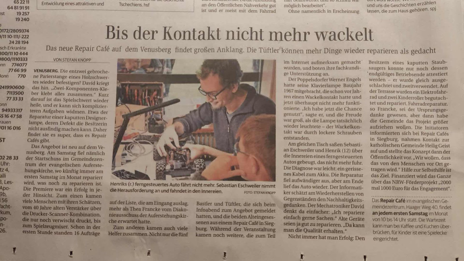 Das Angebot ist neu auf dem Venusberg. Am Samstag fiel nämlich der Startschuss im Gemeindezentrum der evangelischen Auferstehungskirche, wo künftig immer am ersten Samstag im Monat repariert wird, was noch zu reparieren ist.