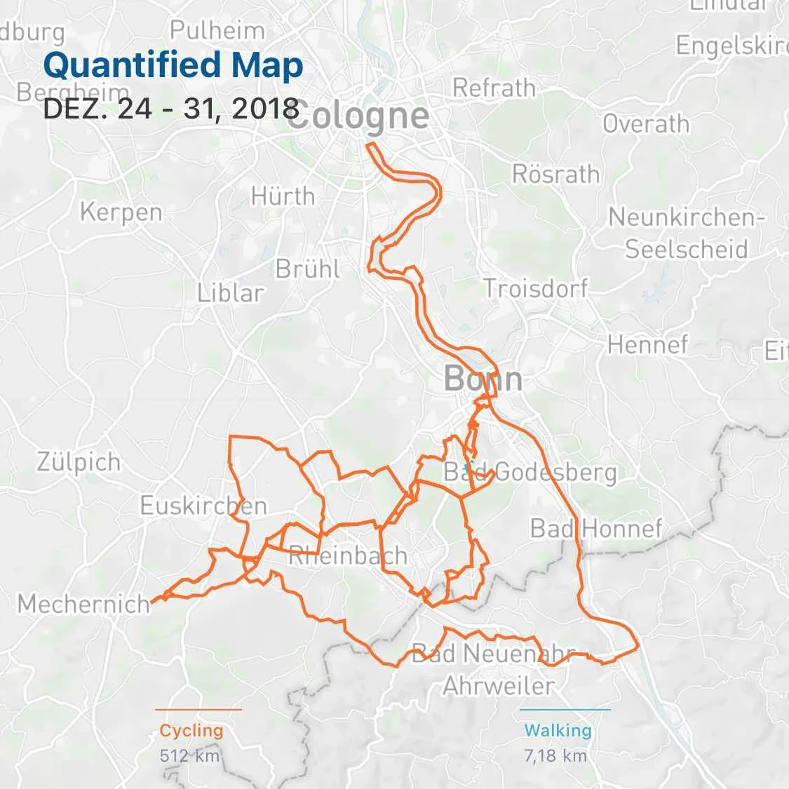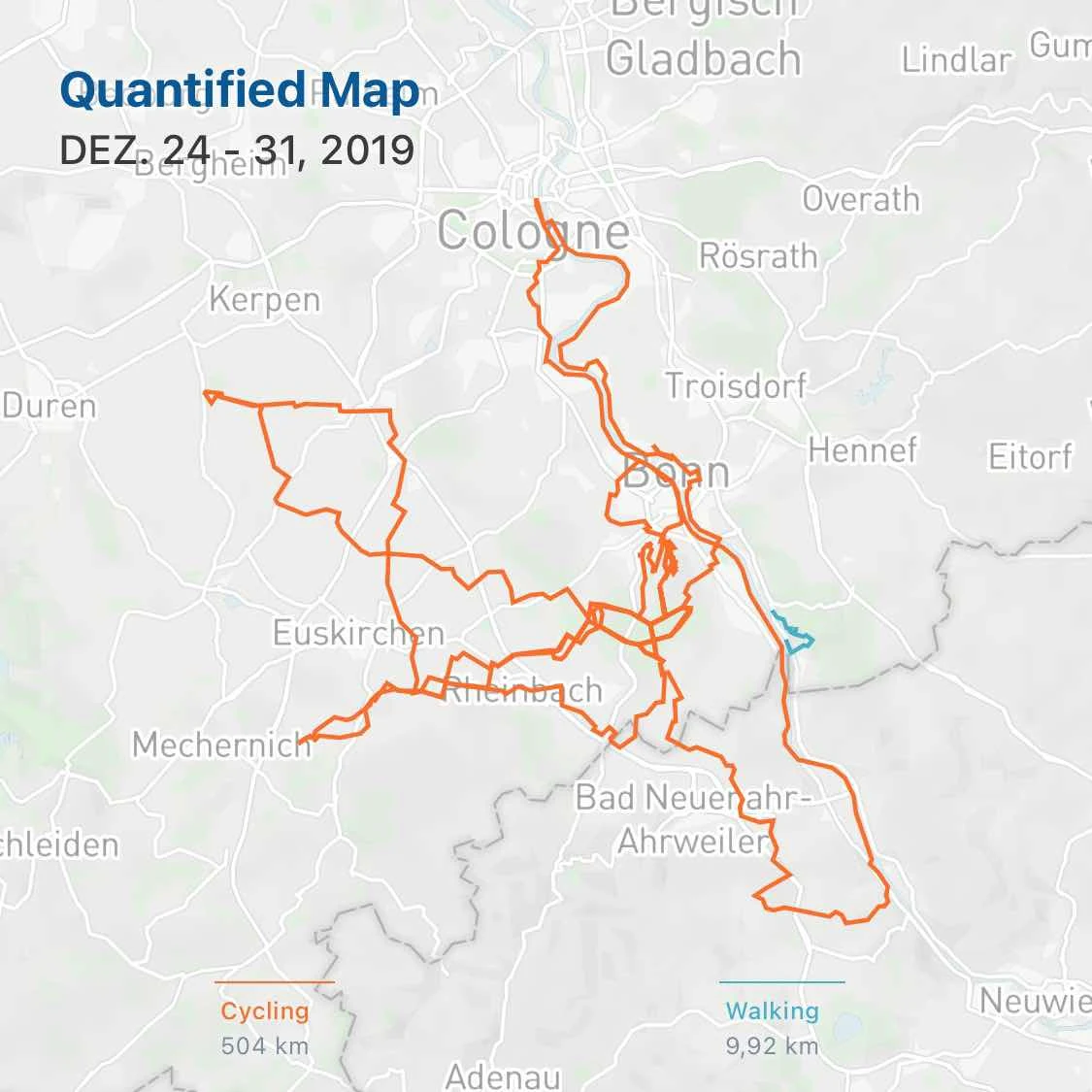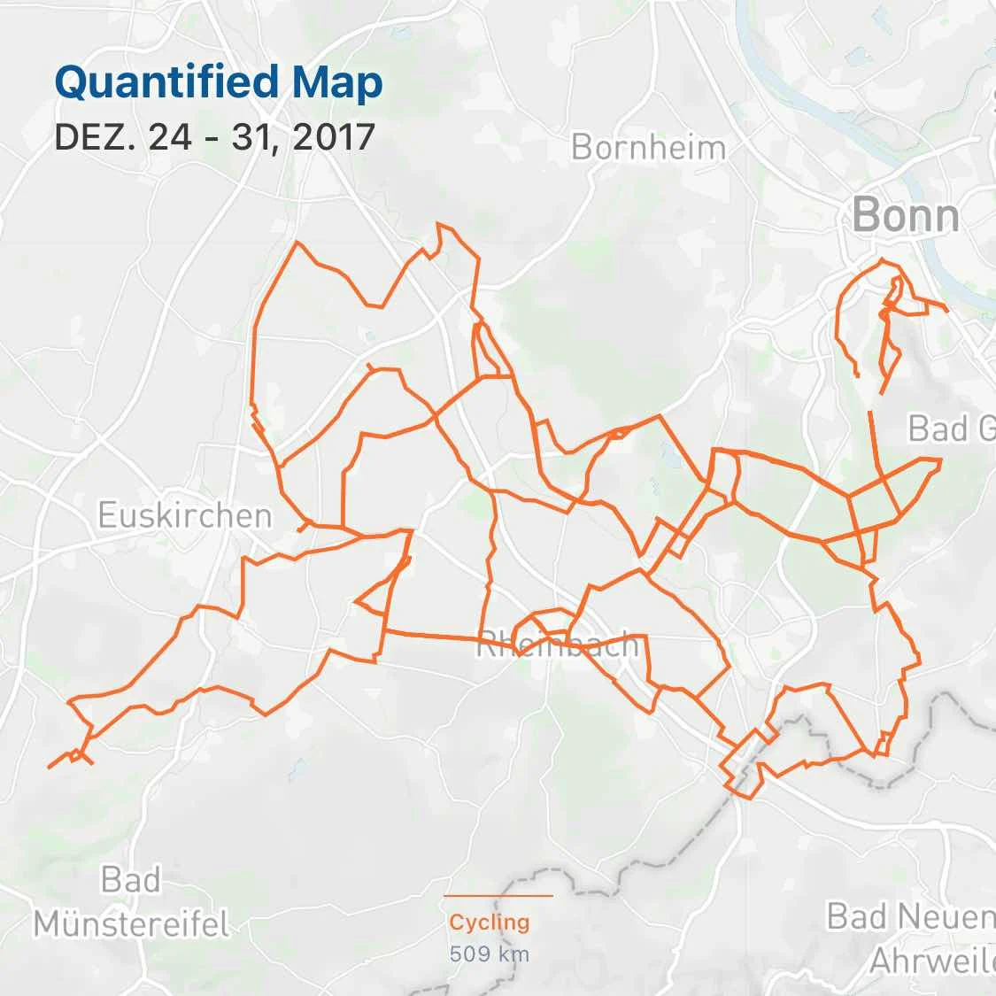 Ich bin für jede Sportkuriosität zu haben. Es gibt neben den festlichen Bräuchen eine Bewegung, die Radeln von 500 km zwischen dem 24. Dezember und 31. Dezember anregt. 500 km in einer Woche zu fahren, kann im Sommer jeder ambitionierte Sportler. Dies in Zeiten zu unternehmen, wo wir aus Freude über das Weihnachtsfest sozial zusammenkommen, ist eine besondere Herausforderung, die sich verträglich nur an den Tagesrändern erledigen lässt, wenn man nicht ganz von der Bildfläche verschwinden möchte.