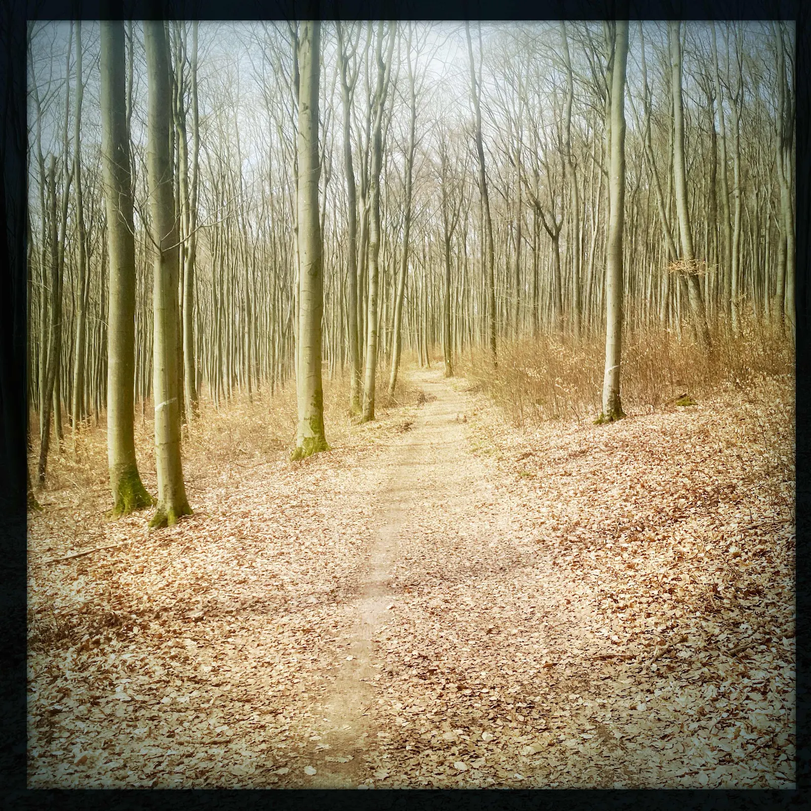 Der Spessart bleibt eine urtümliche Landschaft. Heute lauter Buchen und zwei Waldkindergärten oberhalb von Waldaschaff.