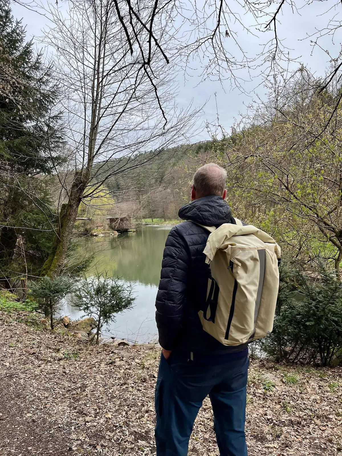 Keine 10 Minuten vom Aschaffenburger Bahnhof erreicht die Bahn den Spessart und eine gänzlich andere Welt öffnet sich. Holz- und Teichwirtschaft, alte Mühlen und ein Gasthof, im Tal rauscht der ICE.
