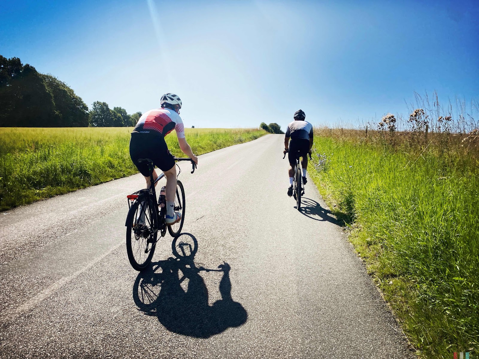 Ausfahrt mit den Jungs vom Feriendomizil in die Svanninger Berge. Höchste Erhebung: 99 Meter. Auf der Höhe Kuhweiden und ein Blick auf die Bucht.